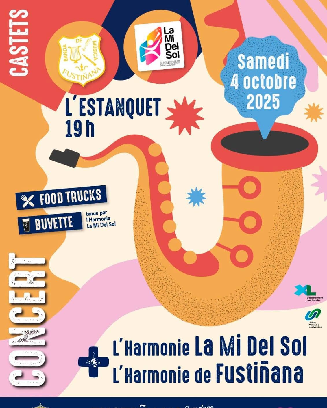 Concert de l'Harmonie La Mi Del Sol et de l'Harmonie de Fustiñana. Buvette et food trucks sur place. Entrée...